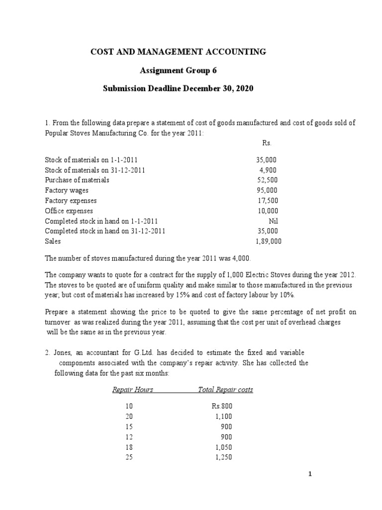 2. Jones, an accountant for G.Ltd. has decided to estimate the fixed and variable
