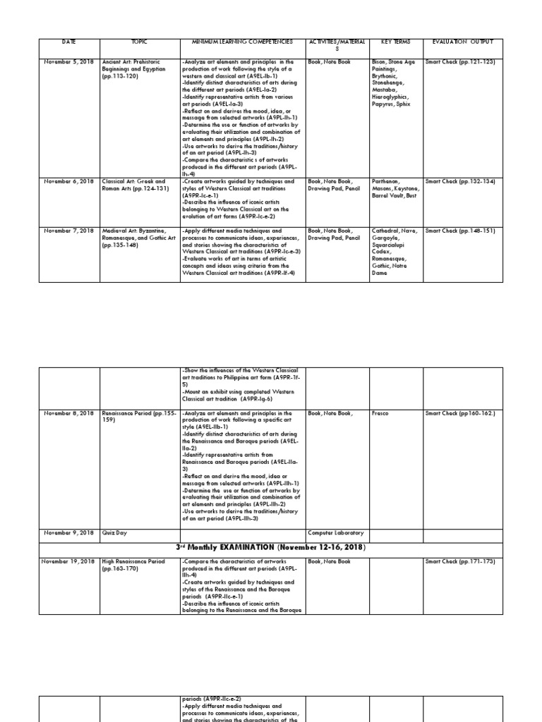 DATE TOPIC MINIMUM LEARNING COMEPETENCIES ACTIVITIES/MATERIAL KEY TERMS EVALUATION OUTPUT
