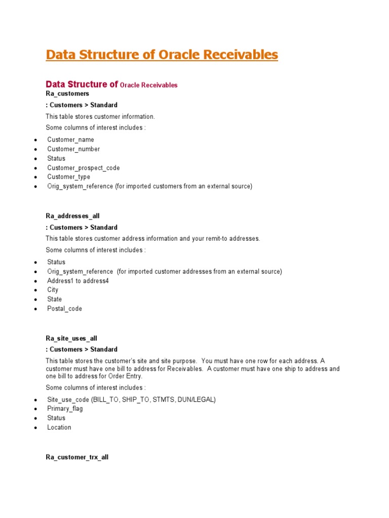 Data Structure of Oracle Receivables