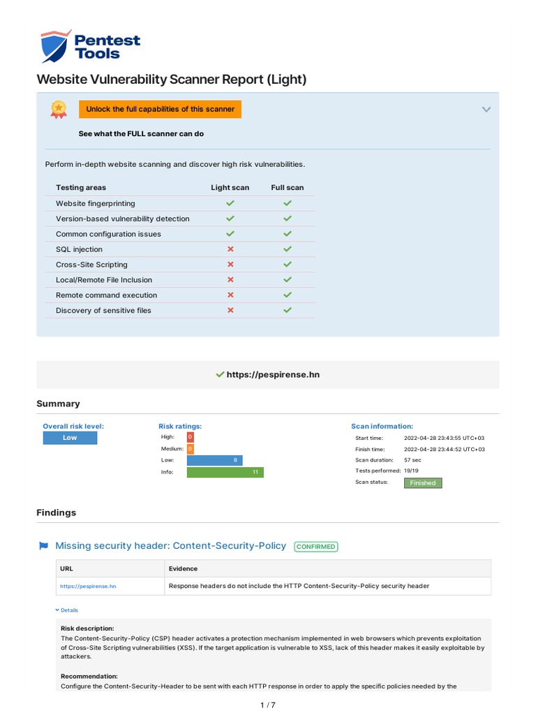 https://pespirense.hn Response headers do not include the HTTP Content-Security-Policy security header