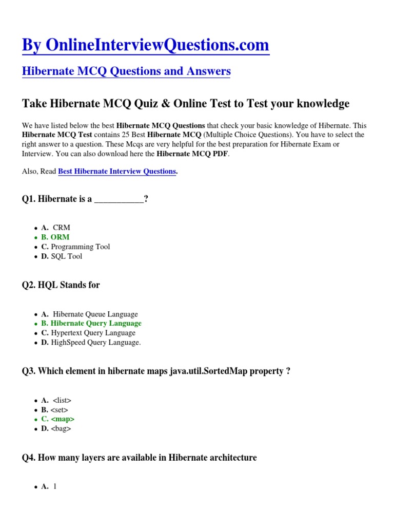 Interview. You can also download here the Hibernate MCQ PDF.