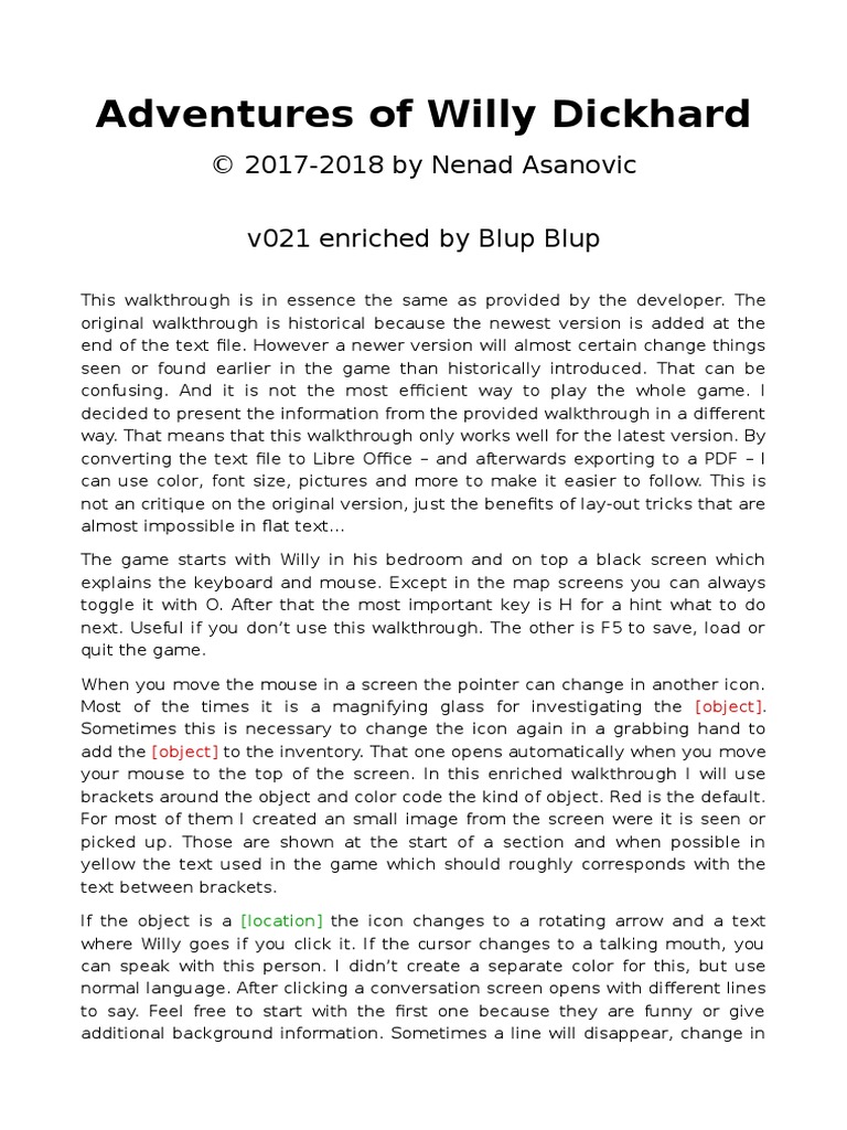Adventures of Willy Dickhard: © 2017-2018 by Nenad Asanovic v021 Enriched by Blup Blup