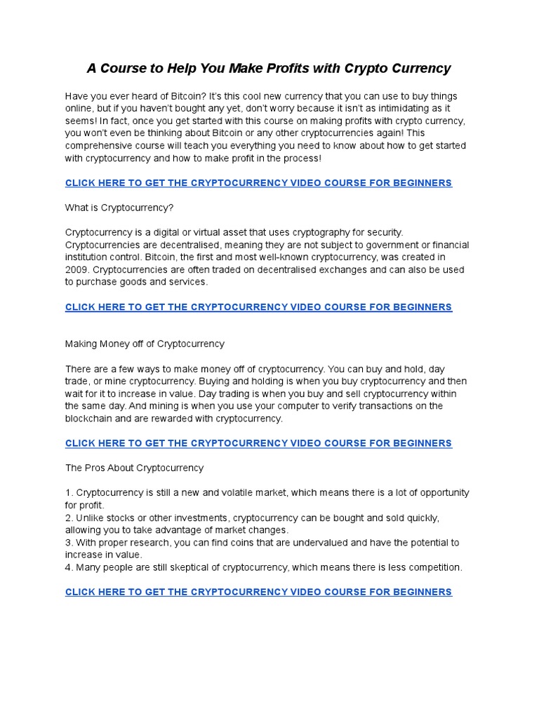 seems! In fact, once you get started with this course on making profits with crypto currency,