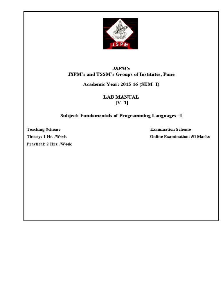 Subject: Fundamentals of Programming Languages-I Name of Faculty: