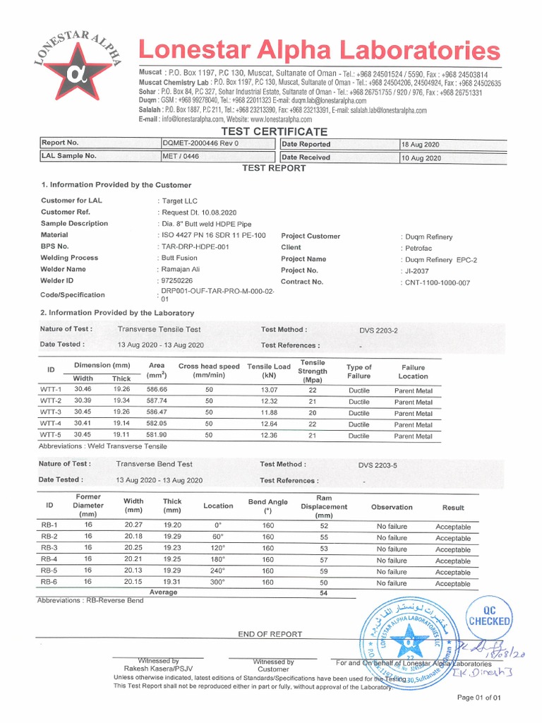 Welding Process: Butt Fusion Project Name Dugm Refinery EPC-2