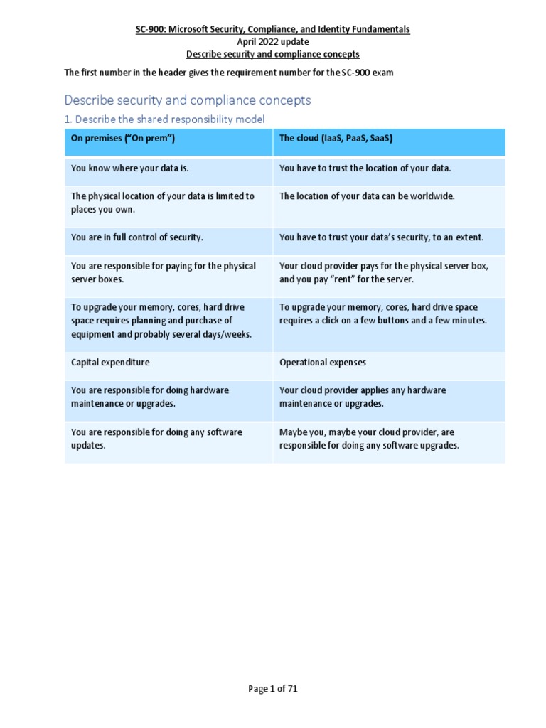 Describe Security and Compliance Concepts: 1. Describe The Shared Responsibility Model