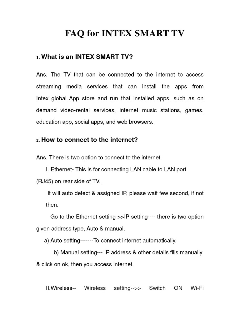 FAQ for INTEX SMART TV