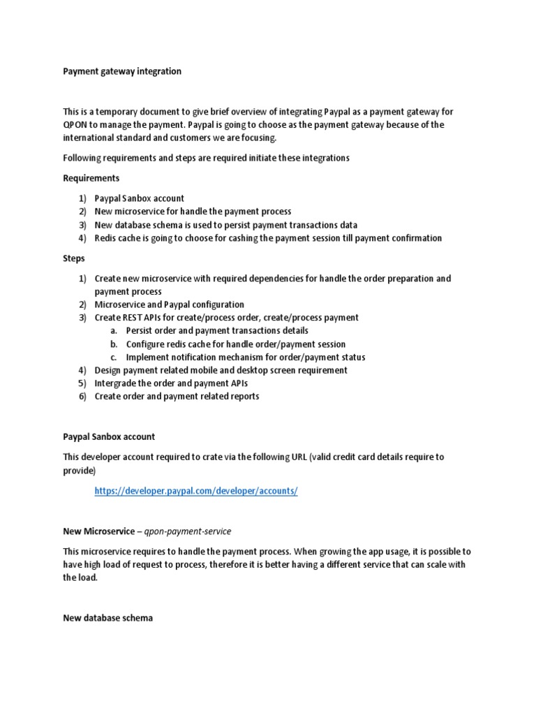 This is a temporary document to give brief overview of integrating Paypal as a payment gateway for