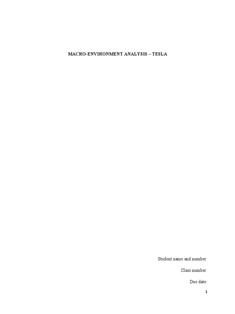 to one metric ton per year. Tesla's macro-environment study considers politics, economics, social
