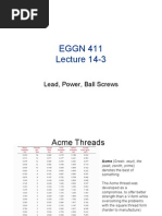 THREAD TYPES The acme thread form, established over 100 years ago, replaced square thread screws, which had straight-sided flanks and were difficult to manufacture. There are three main classes of Acme thread forms: General Purpose (G), Centralizing (C), and Stub Acme. The General Purpose and Centralizing thread form have a nominal depth of thread of 0.50 x pitch and have a 29 included thread angle resulting in a trapezoidal tooth shape (some sizes have 40). Metric trapezoidal thread forms have a 30 included thread angle. When compared to general-purpose thread forms, centralizing threads are manufactured with tighter tolerances and limited clearance on the major diameter. When an acme nut is side loaded, a G class acme nut will wedge when both of the nut thread flanks come in contact with the screw thread flanks. To prevent wedging, less clearance and tighter tolerances are allowed between the major diameter of the nut and the major diameter of the screw. CAUTION - Although a side load will not cause a centralizing thread to wedge, the nut is not designed to operate with a side load such as a pulley, drive belt, etc. See Load Definition