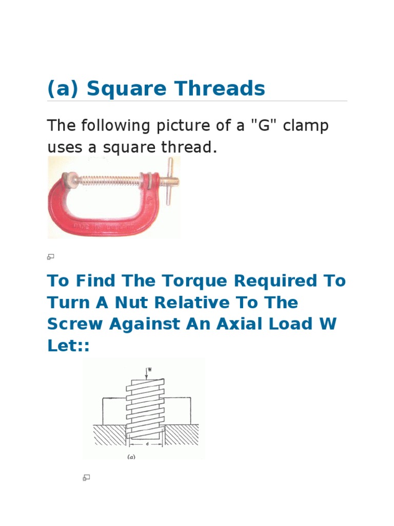 To Find The Torque Required To Turn A Nut Relative To The Screw Against An Axial Load W Let::