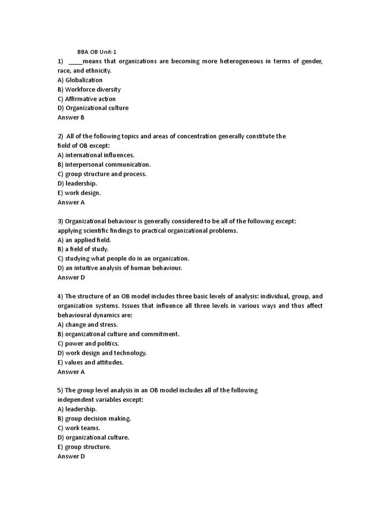 100) All of the following topics and areas of concentration generally constitute the field of OB