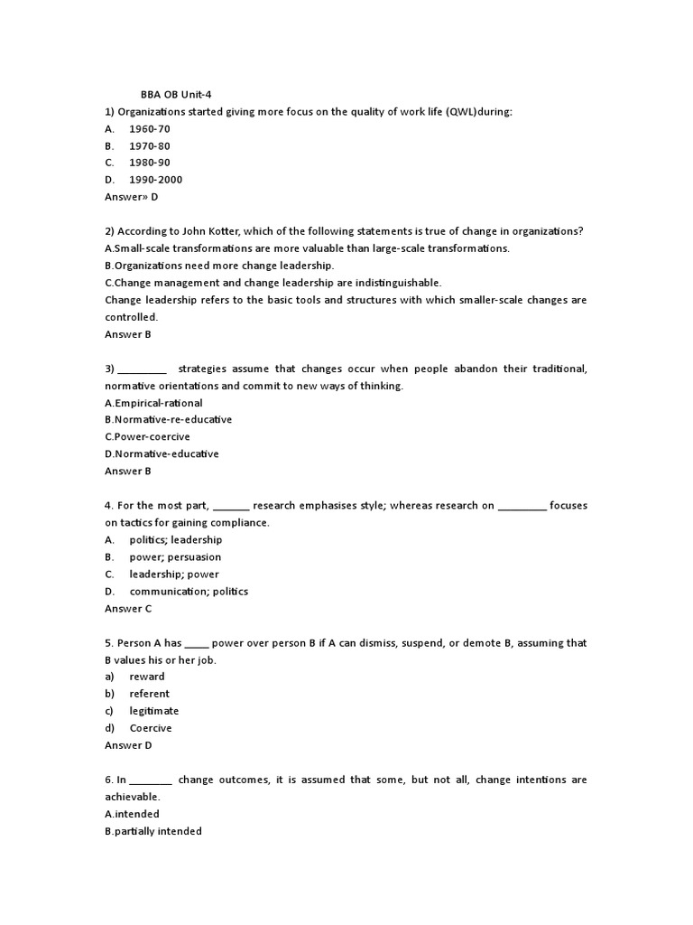 2) According to John Kotter, which of the following statements is true of change in organizations?