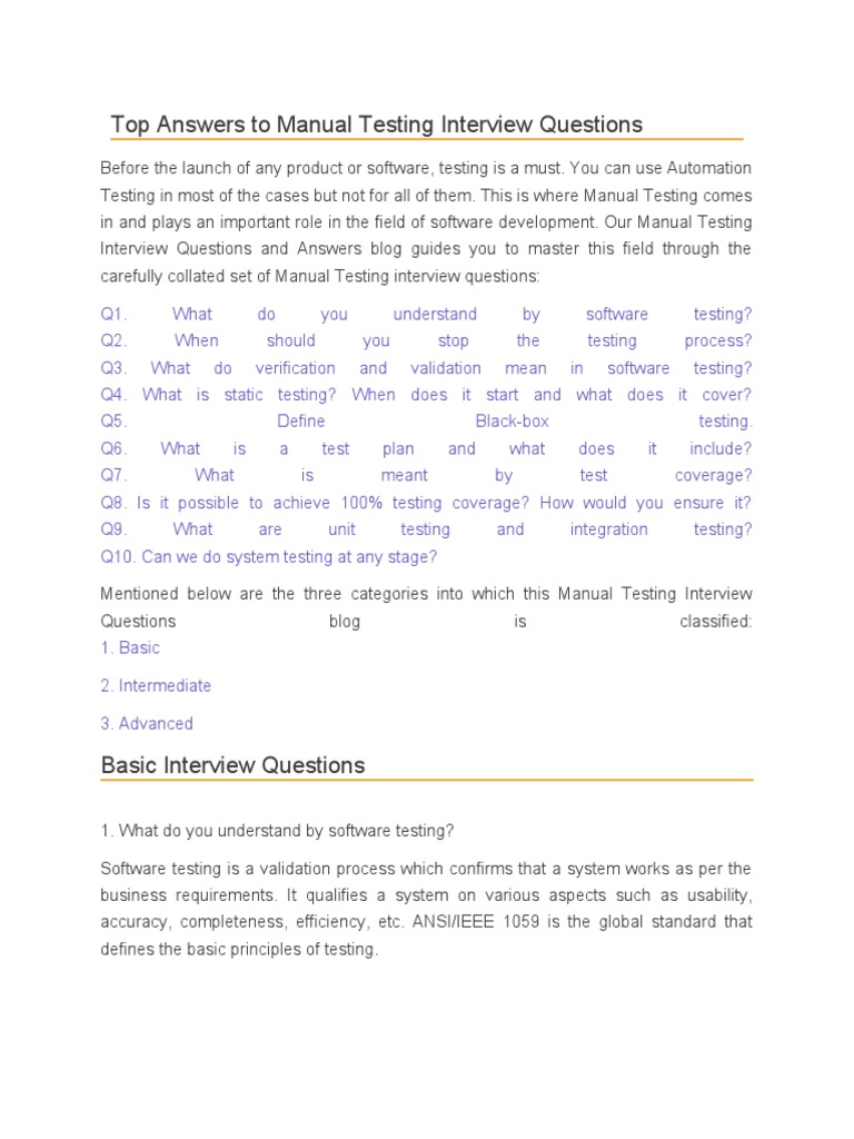 Top Answers to Manual Testing Interview Questions