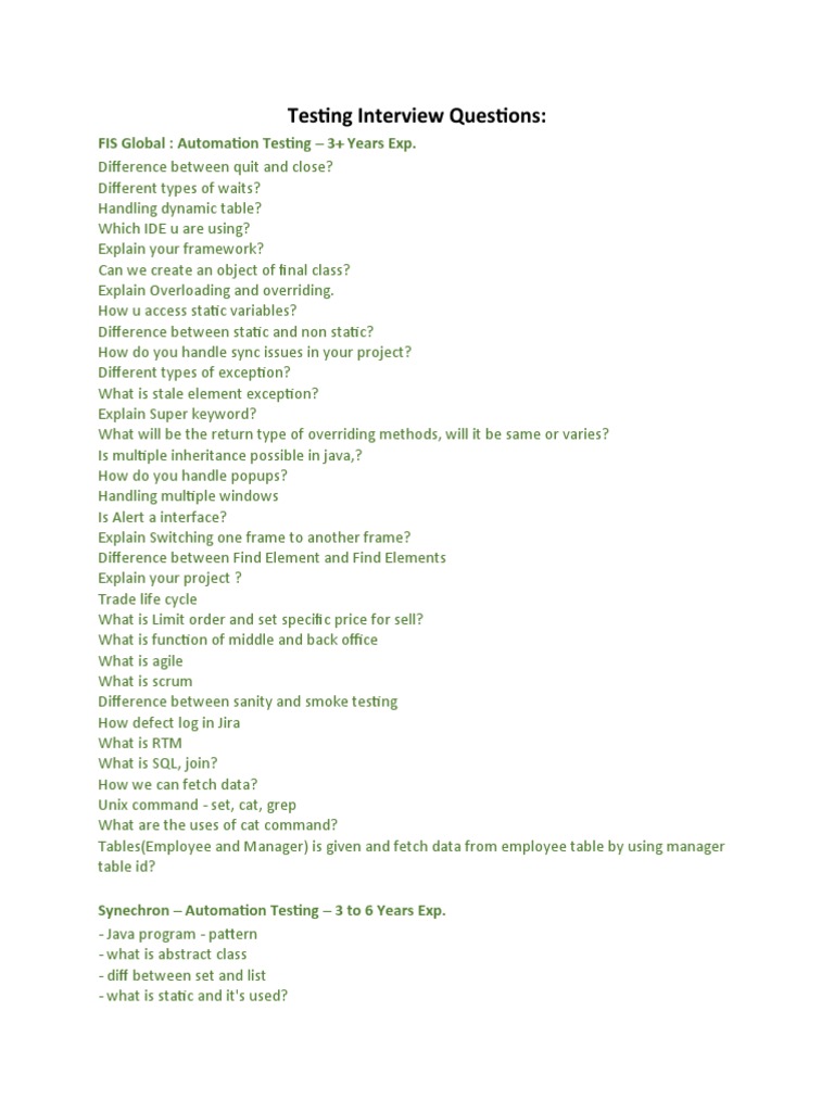 IBM - Manual and Automation Interview Questions - 3 Plus