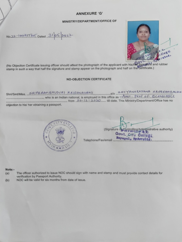 (No Objection Certificate issuing officer should attest the photograph of the applicant with his/hetsigegthrë