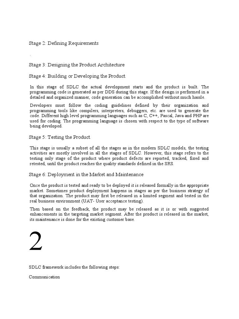 Stage 4: Stage 5: Testing the Product : This stage is usually a subset of all the stages as in the