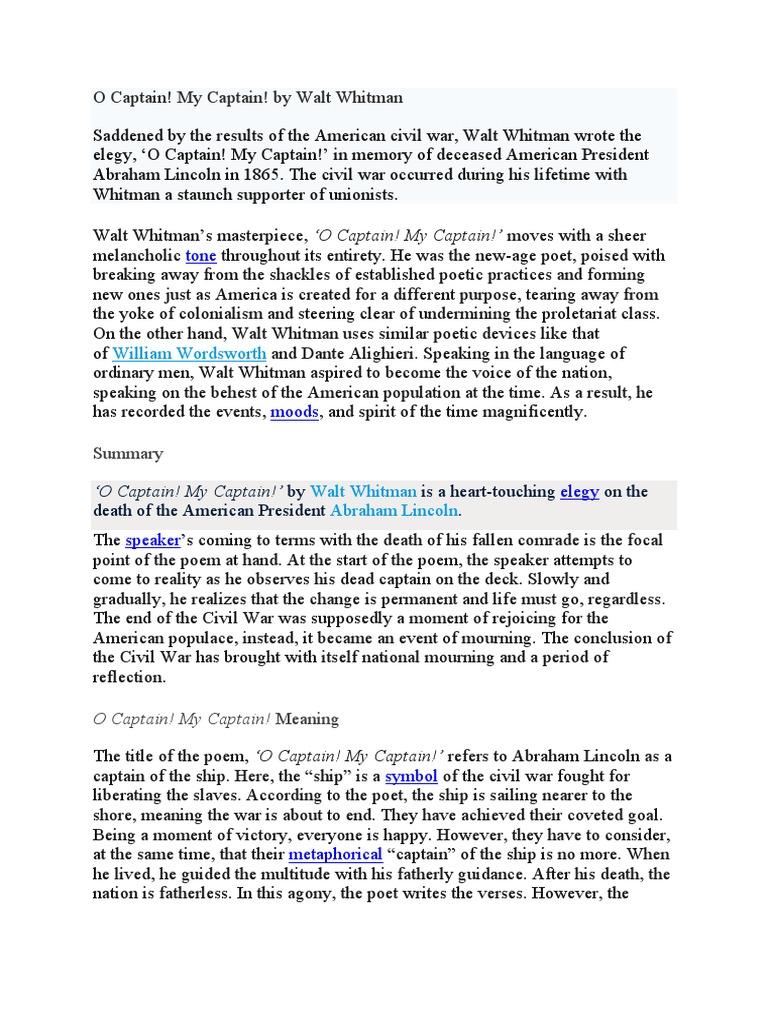 Walt Whitman as a result. ‘O Captain! My Captain!’ at the time of its