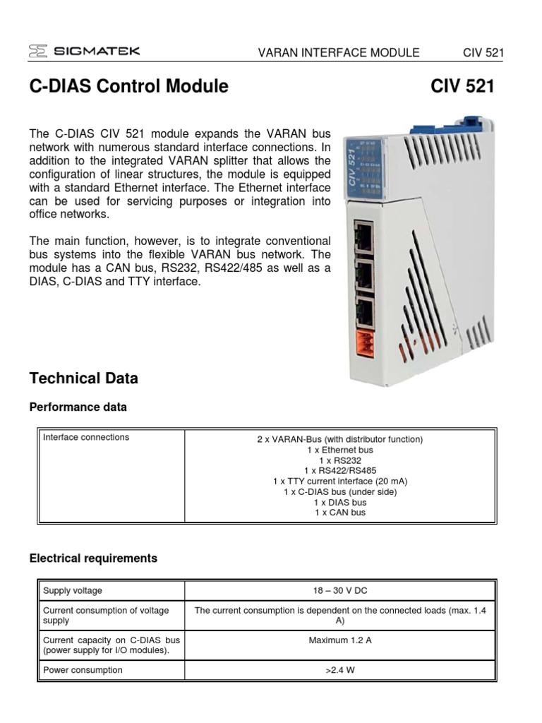 DIAS The CIV 521 allows the connection of DIAS modules. No interrupt function is supported however, as it would limit the function. Modules that require the interrupt (e.g. communication modules) cannot be used.