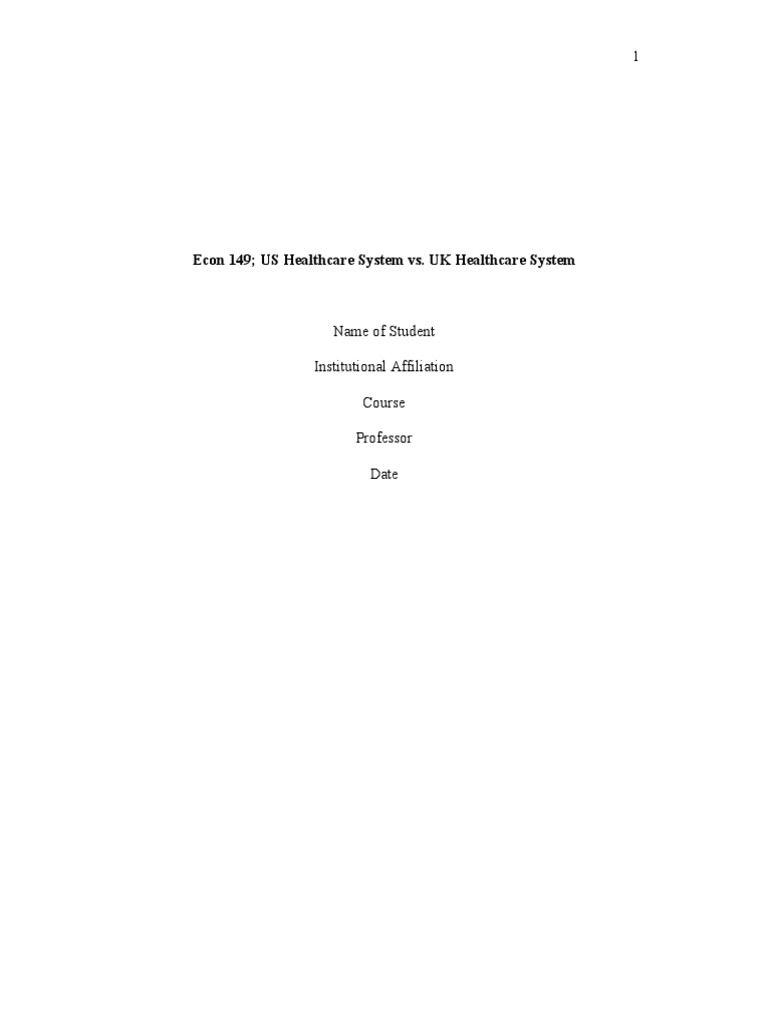 Econ 149; US Healthcare System vs. UK Healthcare System