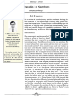 There is a signicant change in Cantors conception of a set in the Grundlagen. In Note 1 he writes: By a manifold or set I understand any multiplicity which can be thought of as one, i.e. any aggregate [inbegri] of determinate elements which can be united into a whole by some law. The most notable changes in this from his earlier explanation of the concept of set is the absence of any reference to a prior conceptual sphere or domain from which the elements of the set are drawn and the modication according to which the property or law which determines elementhood in the set unites them into a whole. But I think that a convincing explanation for this change can be found in his theory of the transnite number; and it will provide a natural transition to the question of the relation of the Grundlagen to the paradoxes of set theory. In introducing the transnite numbers, Cantor employs the notion of set in an entirely new way: numbers are dened in terms of the notion of a set of numbers. Essentially, he introduces the transnite numbers as follows: X is a subset of = S(X) Here, denotes the class of all numbers and, let me emphasize: X ranges over sets. S(X) is intended to be the least number greater than every number in X. So assuming the existence of the null set and unit sets of numbers