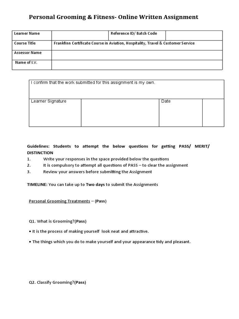 Course Title Frankfinn Certificate Course in Aviation, Hospitality, Travel & Customer Service