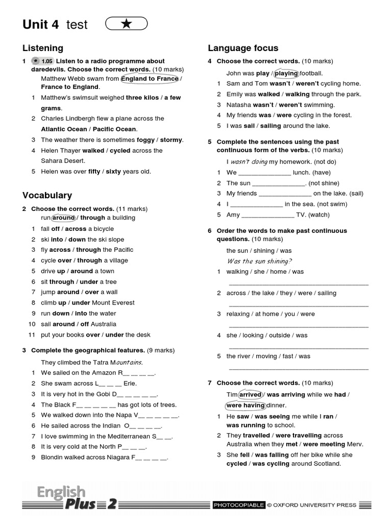 Total marks: Listening _______ / 10 Vocabulary _______ / 20 Language focus _______ / 40