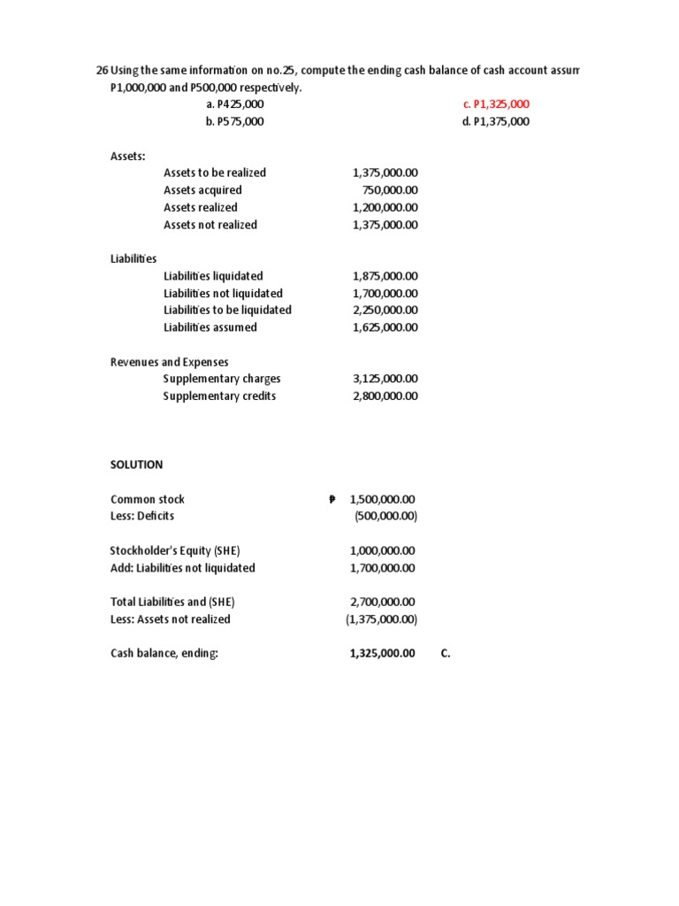 Cash balance, ending: 1,325,000.00 C.