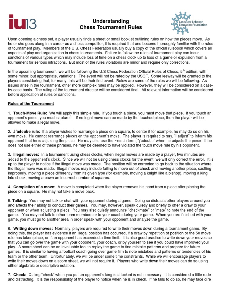 of tournament play. Members of the U.S. Chess Federation usually buy a copy of the official rulebook which covers all