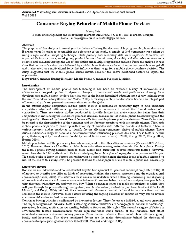 researchers devoted little attention to factors underlying the mobile phone buying decision process in Ethiopia.
