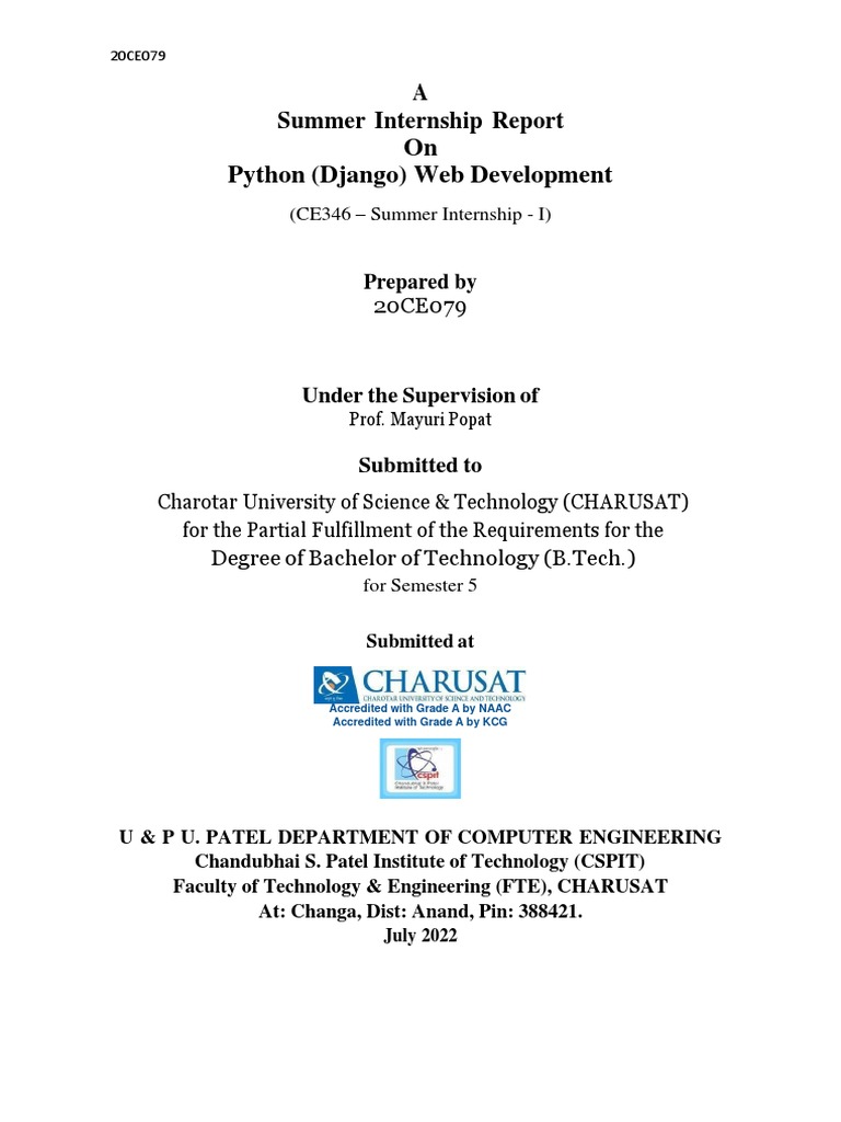 supervision of Prof. Mayuri Popat for the subject Summer Internship – I (CE346)