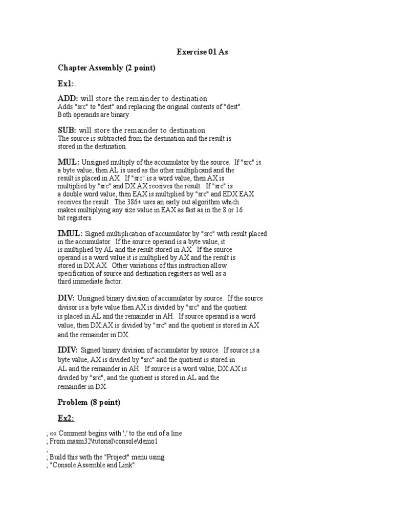 AL and the remainder in AH. If source is a word value, DX:AX is