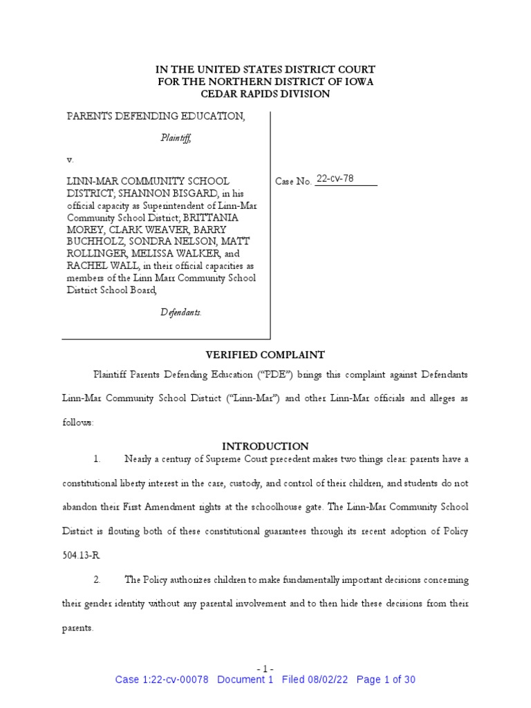 Linn-Mar Community School District (“Linn-Mar”) and other Linn-Mar officials and alleges as