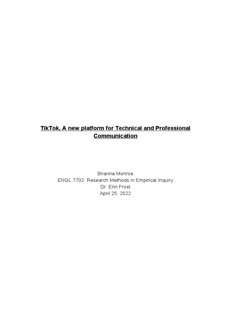To thoroughly examine the effectiveness of TikTok as a form of technical and