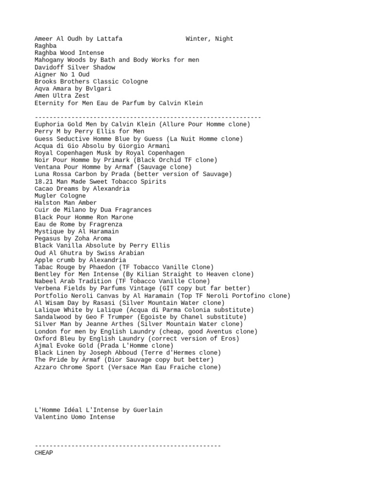Lalique White by Lalique (Acqua di Parma Colonia substitute)