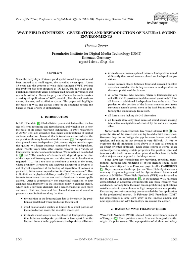formats two-channel stereo was and is dominant in most appli- the TU Delft in the Netherlands [6]. In the nineties WFS has been