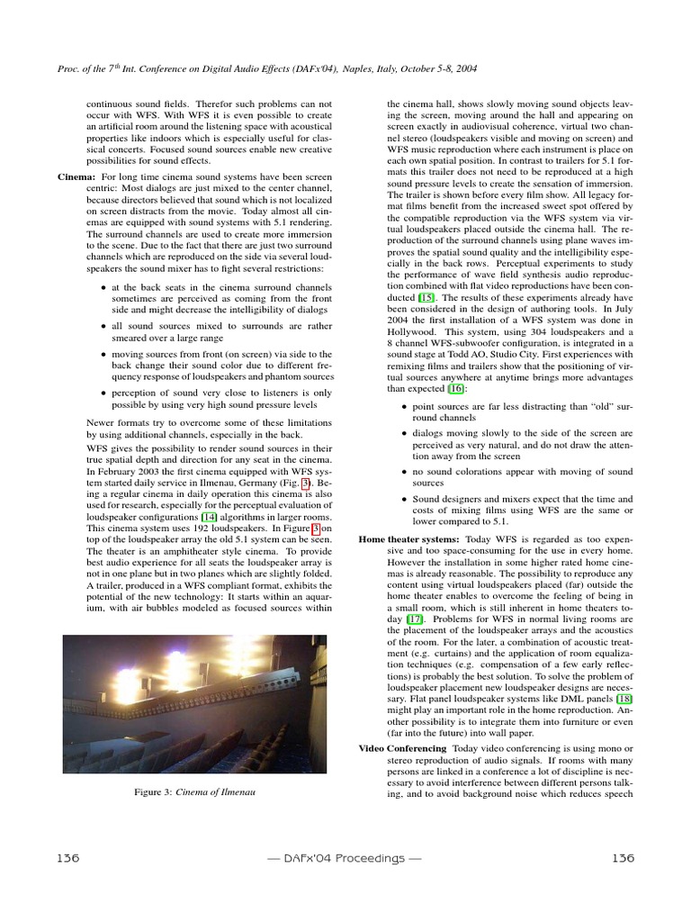 In February 2003 the first cinema equipped with WFS sys- • no sound colorations appear with moving of sound
