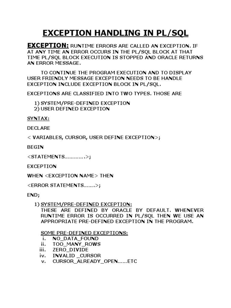 1) SYSTEM/PRE-DEFINED EXCEPTION
