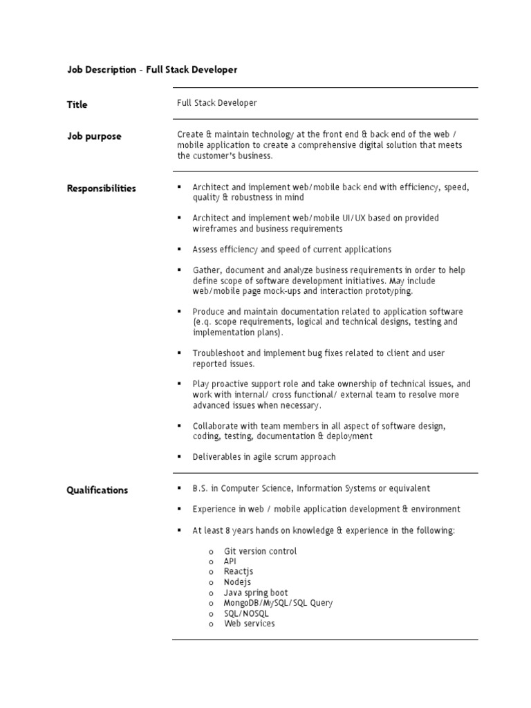 Job purpose Create & maintain technology at the front end & back end of the web /