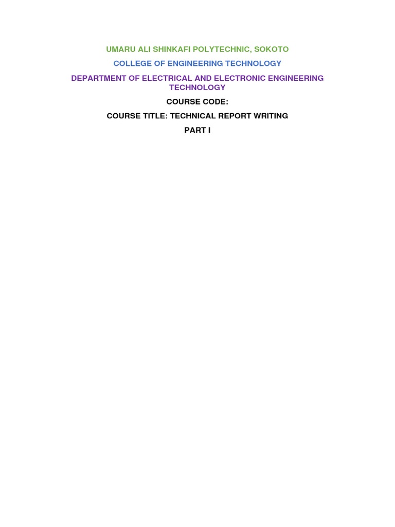 COURSE TITLE: TECHNICAL REPORT WRITING