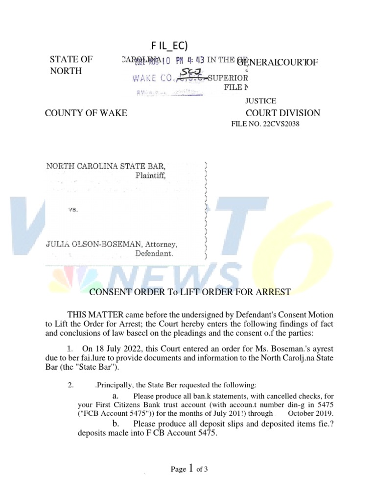 CONSENT ORDER To LIFT ORDER FOR ARREST