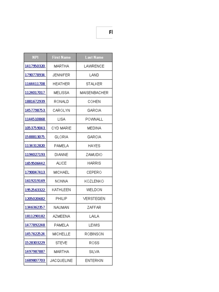 Florida Physician Database - Areas Includes Gainesville, Orlando and Jacksonville