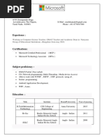 KNOWLEDGE PROFICIENCY: Database Systems, OOPS, C,C++,SQL PAPER PUBLICATIONS: Presented and published a paper on Performance Tuning in Data Warehouse in the National level IT Conference named Latest Trends in Information Technology held at Himalayan Institute of Computer Science (Himalayan Group of Institutions), Kala Amb, H.P. Presented and published a paper on Cloud Computing in Education System in the National Level IT Conference at