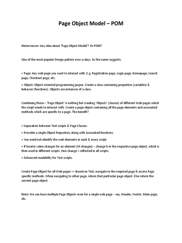 So at the time of interview they wll ask what is POM and how the architecture of your framework?