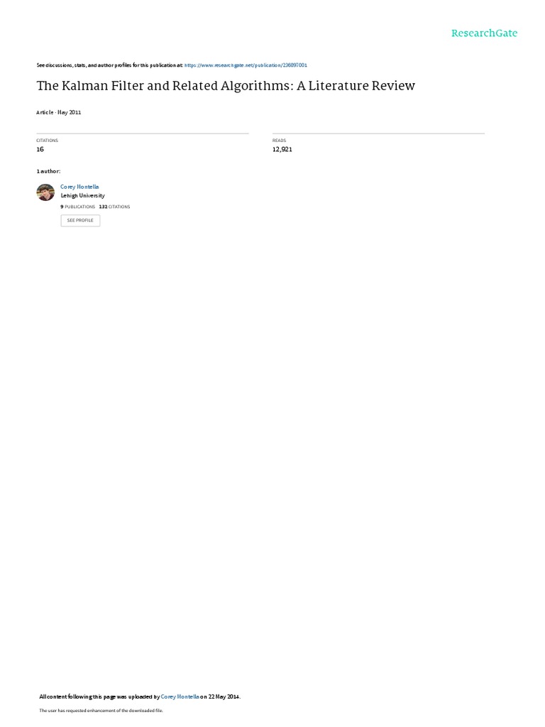 The focus of this paper is the Kalman Filter and its related algorithms. These are