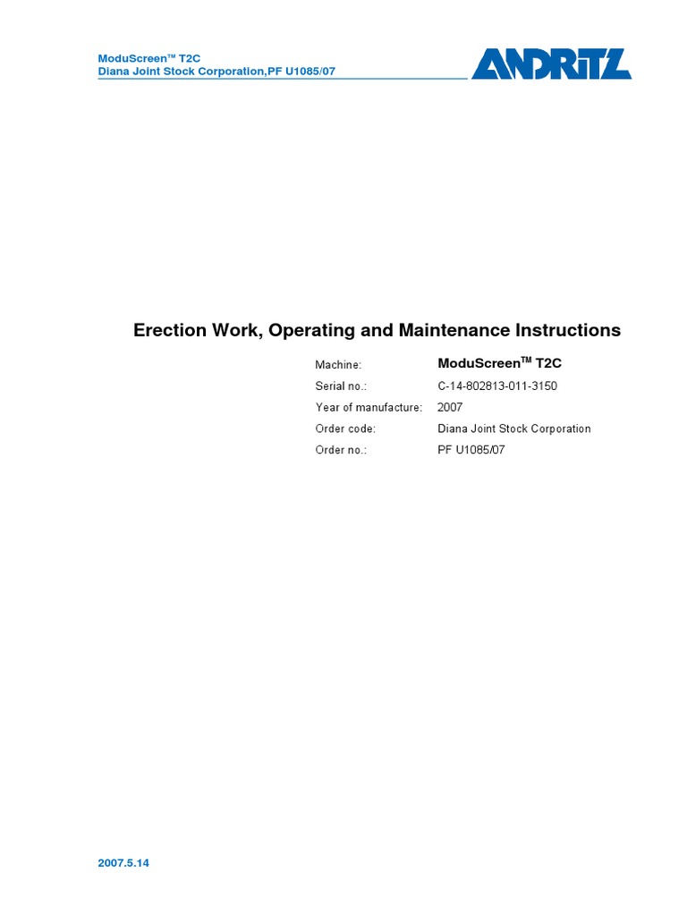 Upper screen Install the upper screen baskets and other upper parts according to ( ► Sec.