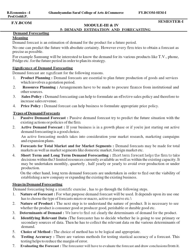 B.Economics –I Ghanshyamdas Saraf College of Arts &Commerce FY.BCOM-SEM-I