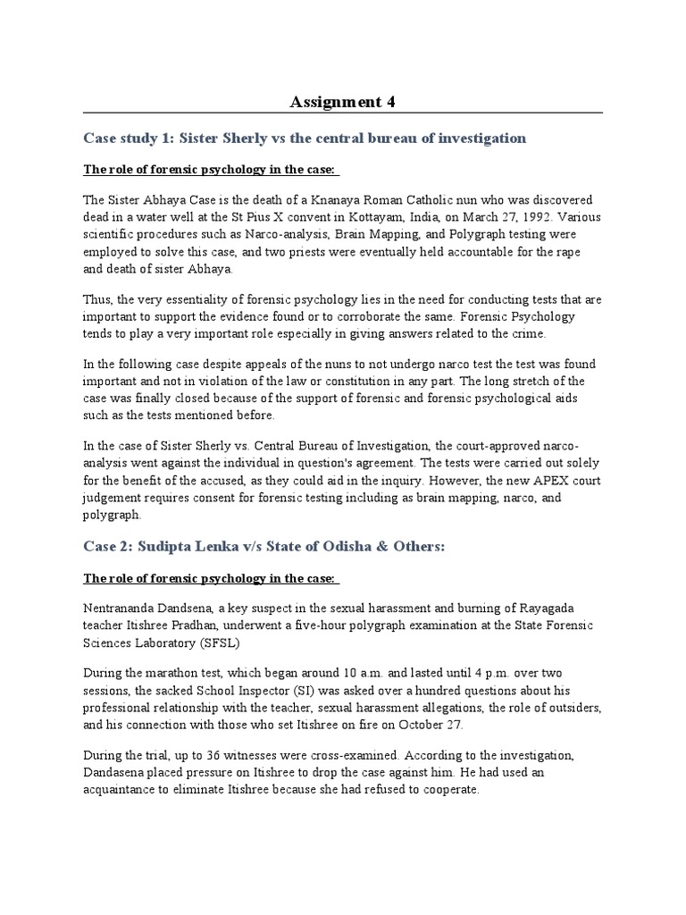 the accused via methods such as a polygraph test. Forensic psychology played a vital role in