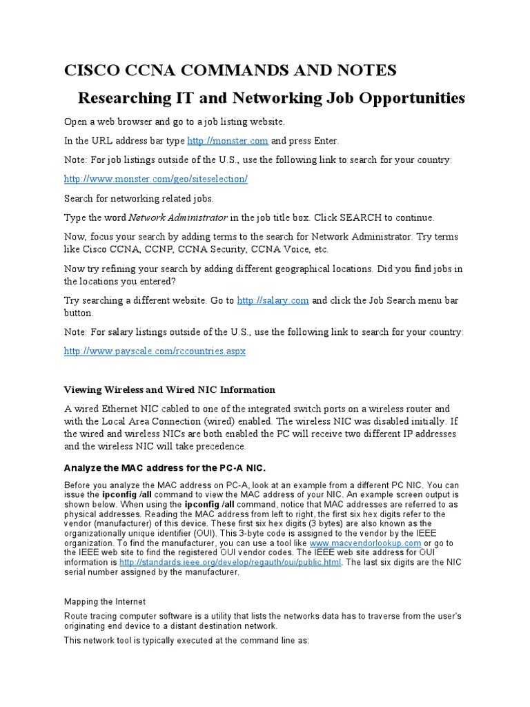 Before you analyze the MAC address on PC-A, look at an example from a different PC NIC. You can