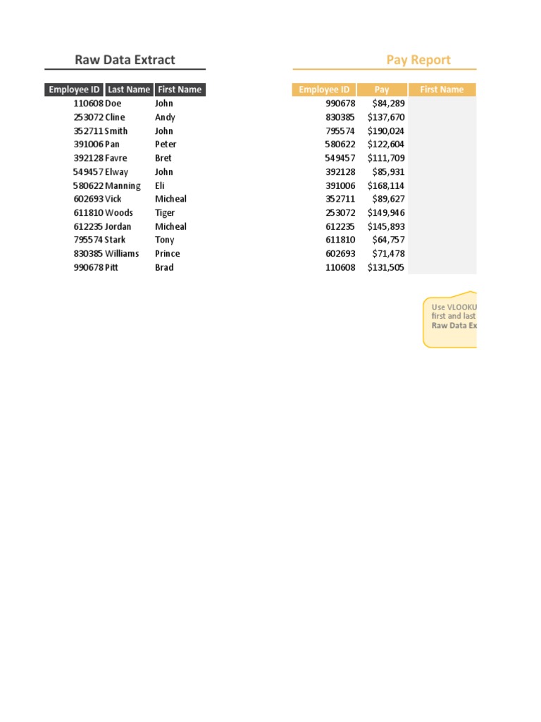 Employee ID Last Name First Name Employee ID Pay First Name